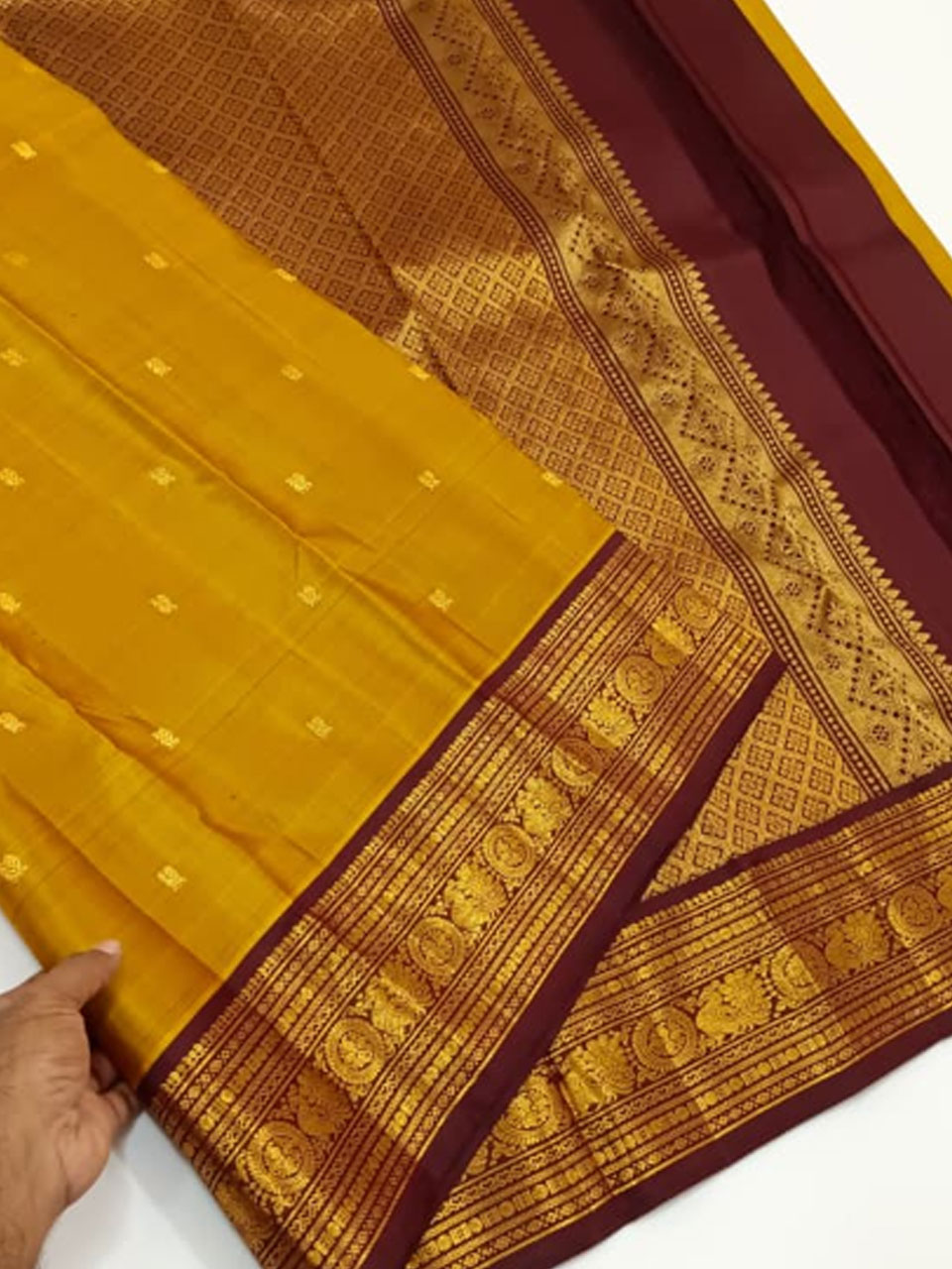 This is a traditional & Classic exclusive Kanchipuram pure silk hand woven by excellent weavers with beautiful traditional Borders and rich pallu